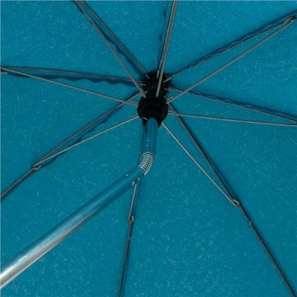 Praktični suncobran za kolica u elegantnoj nijansi plavi melir pruža vašoj bebi učinkovitu zaštitu od sunčevog zračenja tijekom šetnji u gradu i prirodi. Opružni zglob omogućuje glatko podešavanje nagiba prema smjeru sunca, tako da sjena uvijek pada tamo gdje je potrebna.