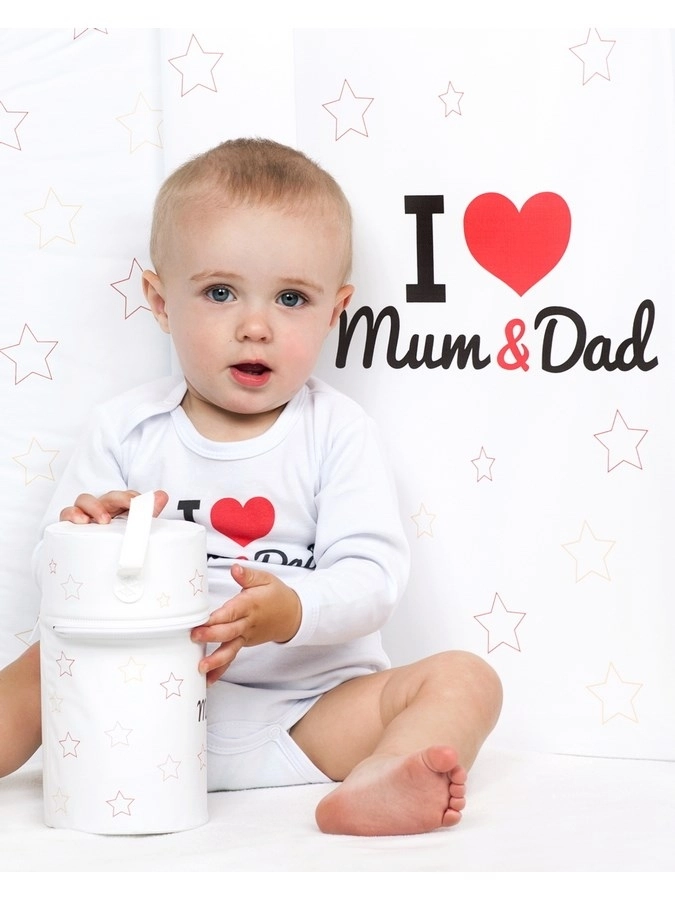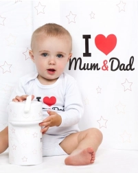Ovaj originalni dječji bodi od ugodnog i kvalitetnog materijala osigurat će bebi cjelodnevnu udobnost. Zahvaljujući slatkom printu I Love Mum and Dad odlično će se istaknuti u svakom outfitu i bit će prelijep dar za nove roditelje.