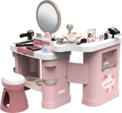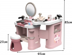 Dječji centar ljepote SMOBY BEAUTY kompletan je salon 3u1 za male stilistice i stiliste. Djeca mogu mijenjati uloge frizerke, vizažistice i manikerke te zahvaljujući bogatoj opremi oponašati stvarne postupke. Stabilna konstrukcija, pregledni spremišni prostori i praktična stolica (oko 27 cm) osiguravaju udobnu i sigurnu igru.