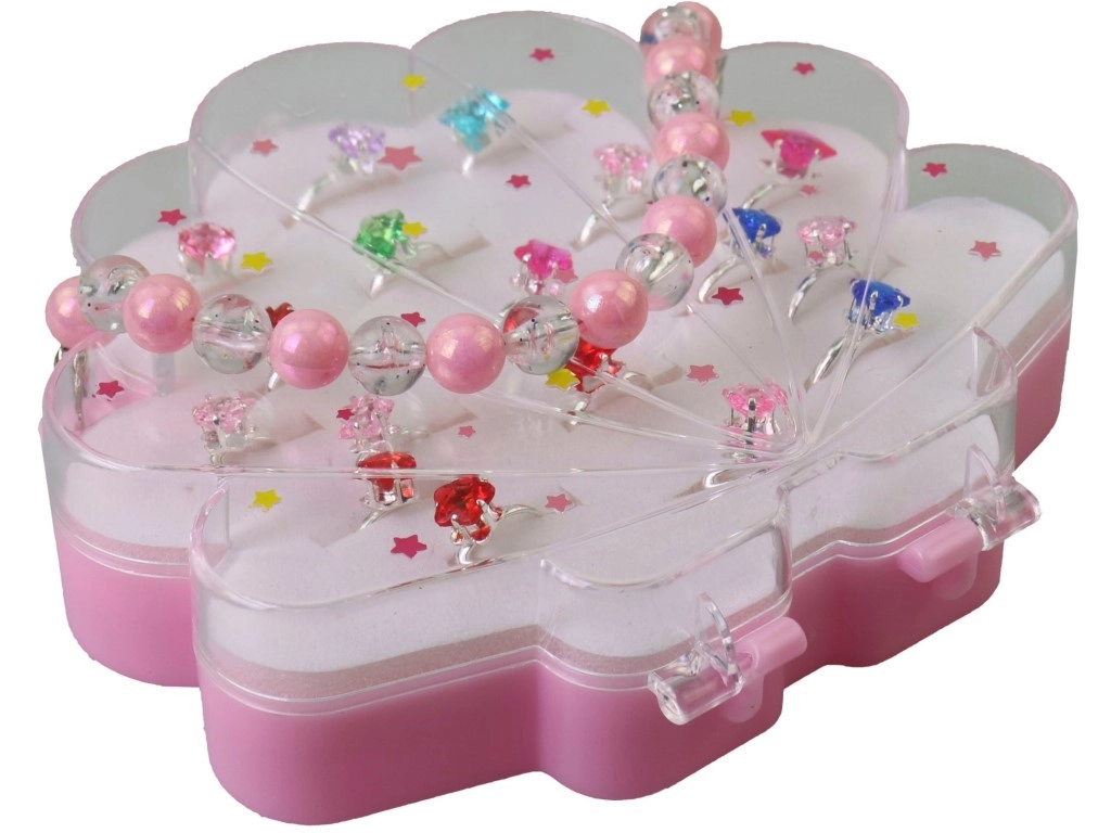 Ovaj set prstenova idealan je izbor za male djevojčice koje vole ukrašavanje i igru princeza. Svaki prsten dizajniran je tako da bude lagan, udoban i jednostavan za stavljanje na dječje prstiće. Praktični display box osigurava pregledno odlaganje i lijepu prezentaciju – odlično i kao poklon.