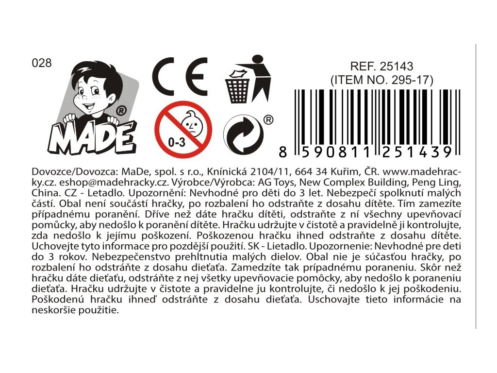Avion je spreman za uporabu odmah nakon raspakiravanja, ne zahtijeva baterije i idealan je za igru u kući i na otvorenom. Sigurno blister pakiranje štiti proizvod tijekom prijevoza i čini ga sjajnim poklonom.