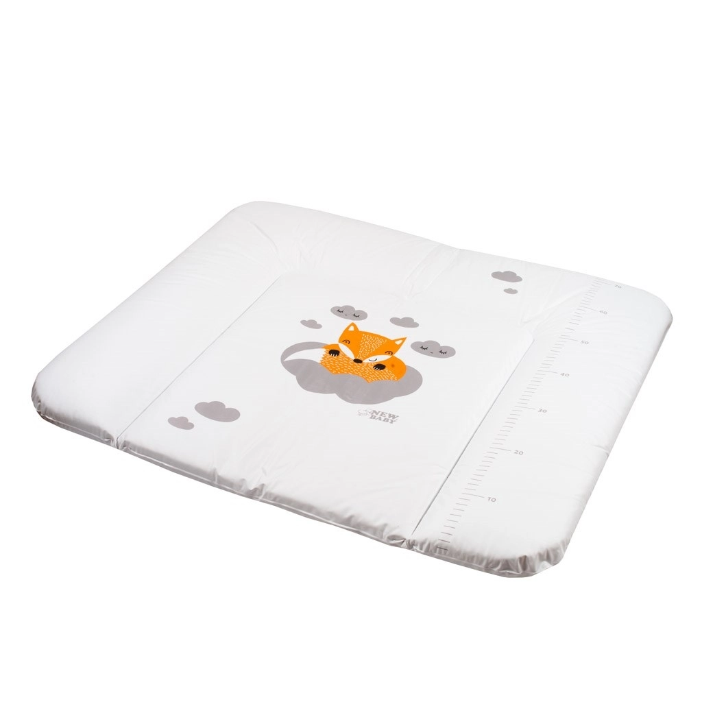 Meka podloga za prematanje NEW BABY s motivom lisice idealna je za svakodnevno prematanje kod kuće i na komodi. Nudi moderan dizajn, vodonepropusnu plastičnu površinu i udoban oblik za siguran i ugodan osjećaj bebe.