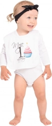 Tisak s duhovitim natpisom mama + tata = ja izrađen je od certificiranih boja pogodnih za bebe. Praktično kopčanje na druker omogućuje brzo stavljanje i skidanje, a bijeli obrub daje podbradku uredan izgled.