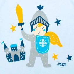 Ova dvodijelna garnitura NEW BABY Mali vitez idealan je odabir za bebe kod kuće i u šetnji. Benkicu krasi razigrani motiv hrabrog viteza, a jaknica je jednobojna i lako se kombinira. Zahvaljujući 100% pamuku, materijal je nježan, prozračan i ugodan na dodir, pa će se vaša beba osjećati udobno tijekom cijelog dana.