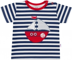 Presladak dvodijelni ljetni komplet NEW BABY Marine od kvalitetnog 100% pamuka oduševit će udobnošću i dizajnom. Sadrži majicu kratkih rukava s mornarskim prugama i aplikacijom brodića te jednobojne kratke hlače s motivom sidra. Mekani pamučni materijal, praktično kopčanje na ramenu i nježna unutarnja podstava ispod aplikacije za zaštitu dječje kože osiguravaju cjelodnevnu udobnost.