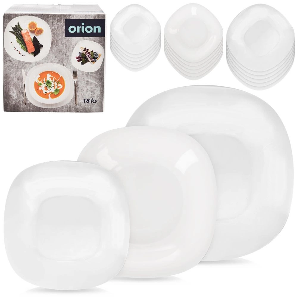 U pakiranju se nalazi 18 dijelova: 6× desertni tanjur 20 × 20 × 1,5 cm, 6× duboki tanjur 21 × 21 × 3,5 cm (500 ml) i 6× plitki tanjur 26,5 × 26,5 × 2 cm. Opalno staklo je lagano, čvrsto i lako se čisti, stoga je idealno za intenzivnu svakodnevnu upotrebu.