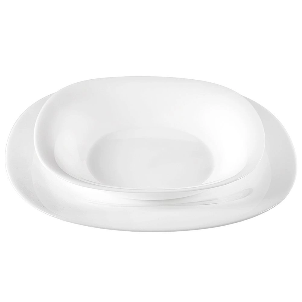 - Stil: moderan kvadratni oblik sa zaobljenim rubovima i sjajno bijela površina za uredno posluživanje.