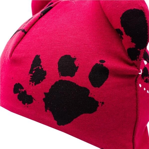 Preslatka beba kapica s ušima New Baby Paw u tamnoružičastoj boji oduševit će modernim izgledom i udobnošću. Potpuno je otisnuta dječjim motivom, lijepo prekriva uši i zahvaljujući vezicama za zavezivanje odlično stoji. Dvoslojna izrada s mekanom pamučnom podstavom i dodatkom elastana osigurava ugodnu elastičnost i savršeno pristajanje – idealno za proljeće i jesen.