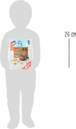 Ovaj piratski čekić set small foot idealan je izbor za kreativnu igru djece od 6 godina nadalje. Šareni drveni dijelovi s piratskim motivima uz pomoć zlatnih pribadača lako se pričvršćuju u elastični pluto i stvaraju originalne “kucane” slike. U kompletu su i četiri obostrano tiskane kartice s prijedlozima, koje nude inspiraciju i potiču maštu.