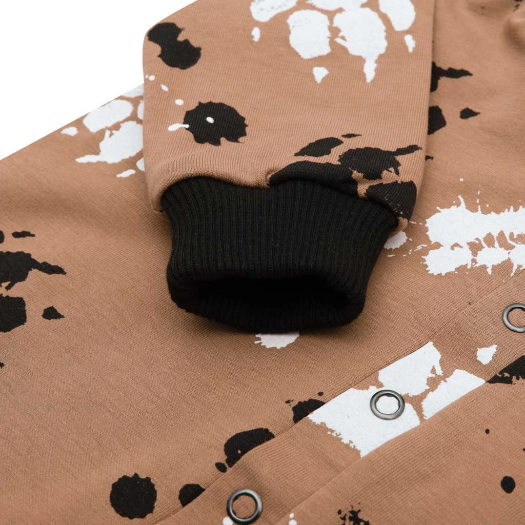 Praktični drukeri duž cijele dužine olakšavaju presvlačenje, dok kapuljača s ušima štiti glavicu i daje presladak izgled. Rastezljivi rubovi na rukavima i nogavicama bolje prianjaju i sprječavaju podizanje. Idealan kao svakodnevna odjeća za proljeće i jesen.