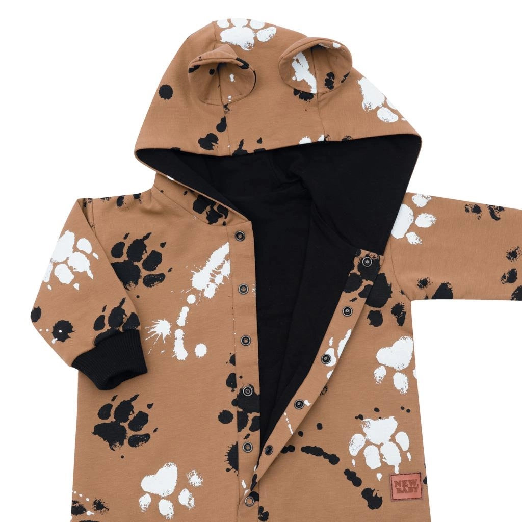 Stilski i funkcionalan kombinezon za bebe NEW BABY u gorušičastoj boji s motivom šapica spaja nježan materijal i promišljene detalje za svakodnevnu udobnost. Glatka pamuka s elastanom ugodno se prilagođava, a mekana pamučna podstava zadržava toplinu bez pregrijavanja.