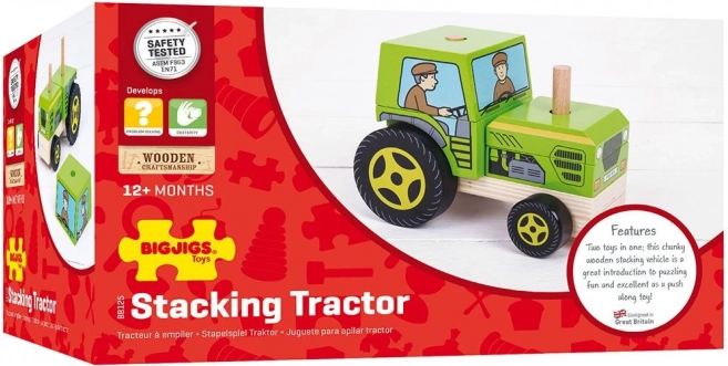 Ovaj drveni traktor BIGJIGS spaja slagalicu s vozilom za igru. Prije nego krene na “polje”, djeca moraju pravilno staviti i posložiti dijelove na štapiće, čime na zabavan način razvijaju logiku i strpljenje. Zahvaljujući pokretnim kotačima spreman je za vožnju po dječjoj sobi.
