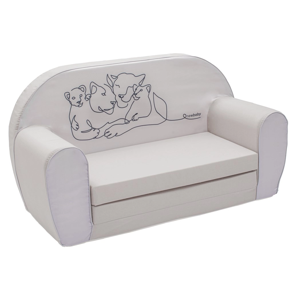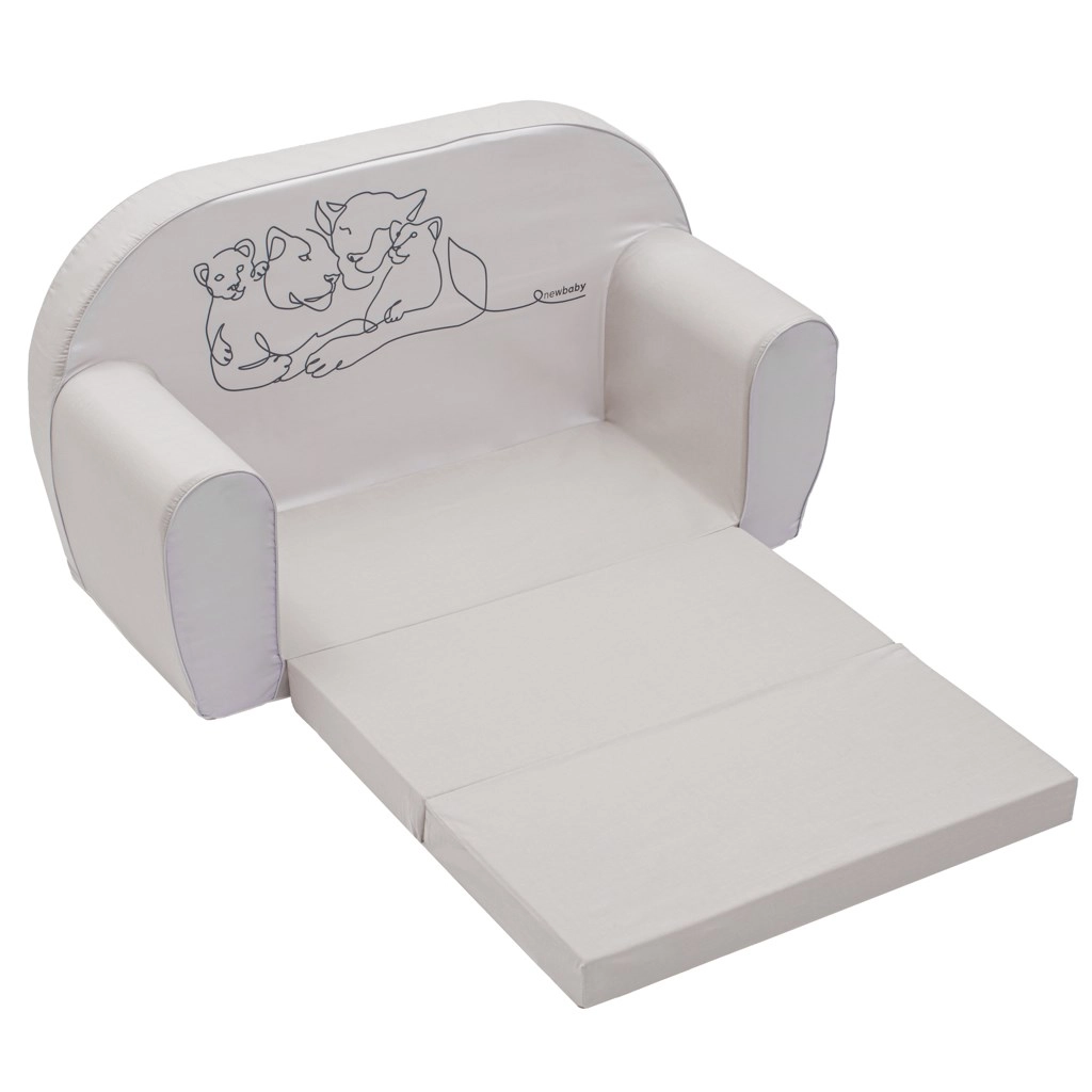 Stilska dječja rasklopiva sofa New Baby idealna je za svaku dječju sobu. Izrađena je od mekane i lagane poliuretanske pjene, ima odvojivu pamučnu navlaku s patentnim zatvaračem i pruža sigurno i udobno sjedenje bez tvrdih elemenata. Ugodan svijetlosivi dizajn s motivom dinosaura odlično se uklapa u dječji interijer i mami na odmor i igru.