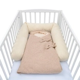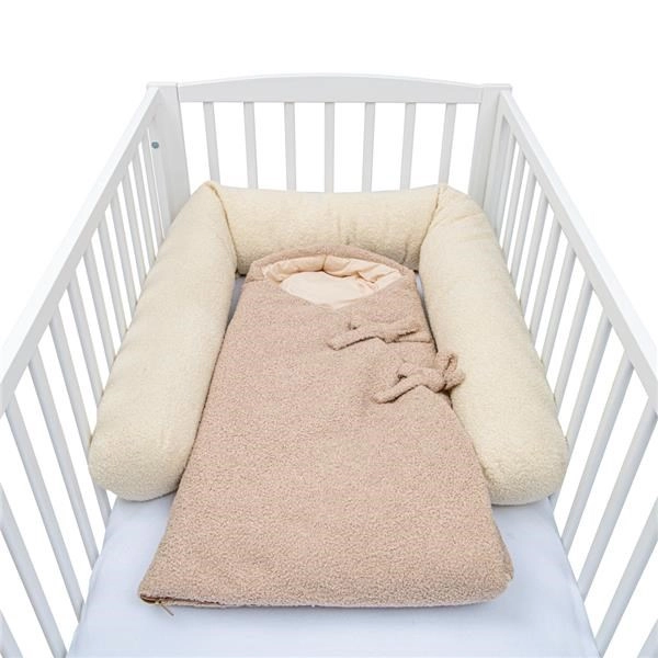 Praktičan povoj i vreća za spavanje NEW BABY Teddy u bež boji moderna je varijacija na klasični povoj. Zahvaljujući zatvaranju na patentni zatvarač i vezicama savršeno obavija bebu, pružajući joj osjećaj sigurnosti i ugodnu toplinu. Kolekcija TEDDY ističe se efektom bouclé teksture, mekoćom i elegantnim izgledom.