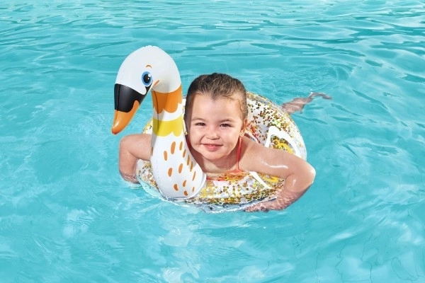 Preslatki napuhavajući kolut u obliku labuda marke Bestway idealan je za djecu od 3 do 6 godina. Zahvaljujući izdržljivom materijalu PVC, sigurnosnom povratnom ventilu i kompaktnim dimenzijama, kolut nudi udobnu i sigurnu vodenu zabavu uz bazen, na plaži i na jezeru.
