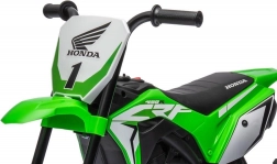 Stilski električni motor za djecu inspiriran legendarnim HONDA CRF 450R oduševit će sportskim izgledom, jednostavnim upravljanjem i sigurnom vožnjom. Nakon uključivanja reproducira zvuk pokretanja motora, pritiskom na pedalu glatko kreće, a terenska plastična kola osiguravaju stabilnost i na otvorenom. Zahvaljujući profiliranom sjedalu, metalnim (čeličnim) osovinama i nosivosti 25 kg idealan je za najmlađe vozače. U paketu su zvono (klakson), punjiva baterija 6 V 4,5 Ah i punjač.