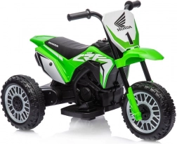 Licencirani dječji motor BABY MIX HONDA CRF 450R zelen spaja realističan izgled omiljenog modela sa sigurnim radom za djecu od 24 mjeseca. Jednostavno upravljanje pedalom, stabilna široka kola s terenskim profilom i udobno sjedalo čine vožnju zabavom i vježbom motorike.