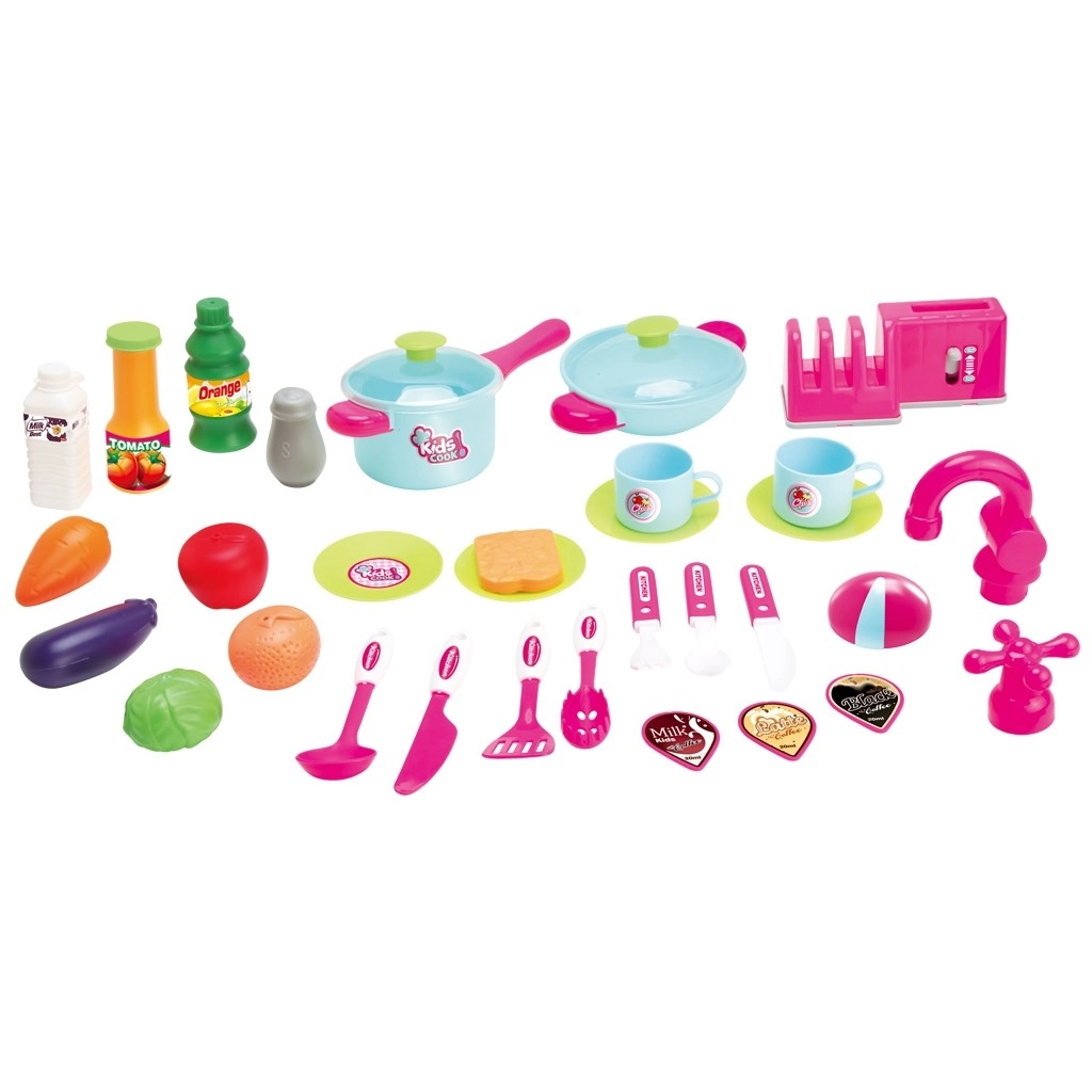 Dio kuhinjice su i aparat za kavu, toster za sendviče, sudoper sa slavinom i napa s kukicama za vješanje pribora. Praktične police i ocjeđivač za tanjure održavaju sve uredno organiziranim. Konstrukcija je dizajnirana s naglaskom na sigurnost i jednostavnost korištenja za djecu.