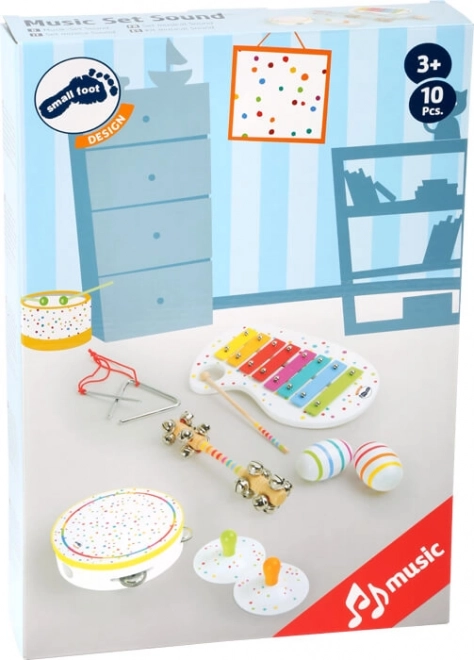Otkrijte radost glazbe s ovim preslatkim, točkastim setom brenda Small Foot – idealnim za prva muziciranja djece. Set nudi 6 različitih instrumenata s jedinstvenim zvukovima i potiče razvoj ritma, koordinacije i sluha. Zahvaljujući kvalitetnoj kombinaciji drva i metala set je izdržljiv i siguran za djecu od 3 godine. Ne radi se o glazbenim instrumentima, već o igračkama za zabavu.