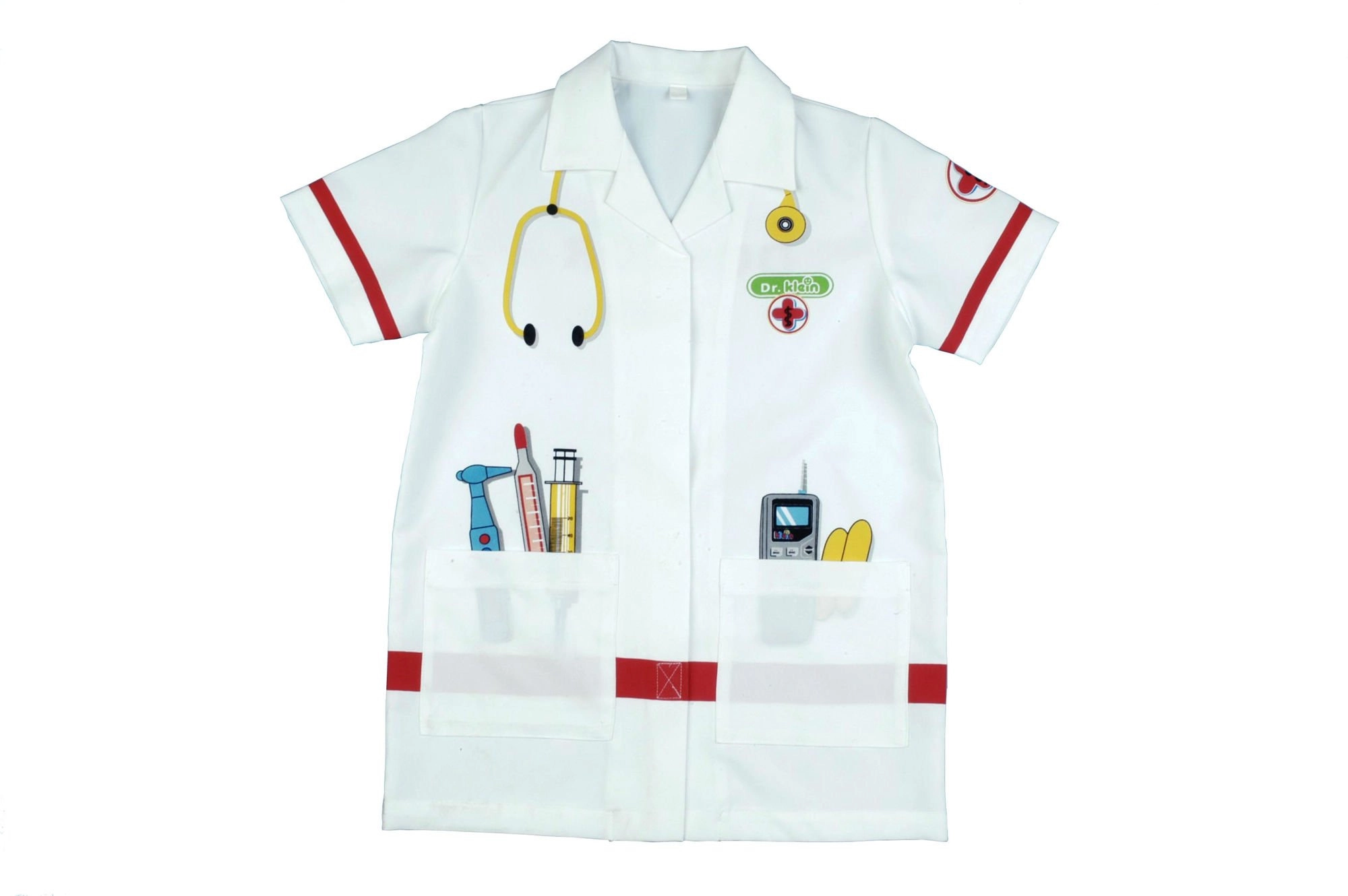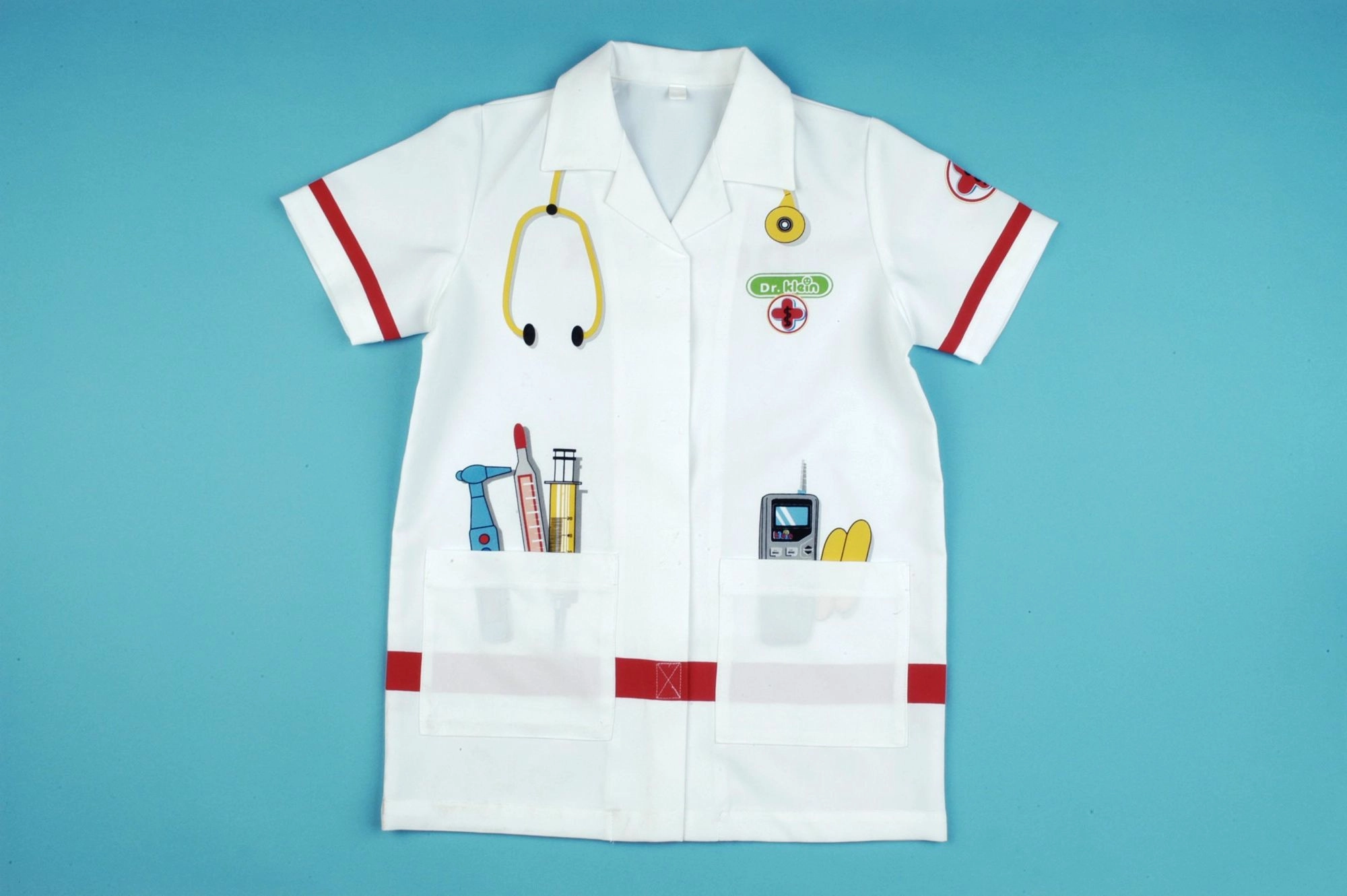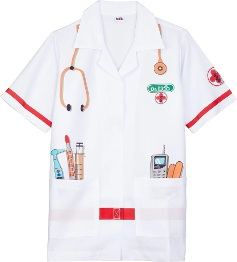 Dječji liječnički ogrtač KLEIN potiče maštu i razvija socijalne vještine tijekom igre doktora. Lagani i udobni kroj s ovratnikom, kratkim rukavima i zatvaranjem na čičak omogućuje lako oblačenje i svlačenje. Šareni otisci alata dodaju igri autentičnost i zabavu.