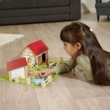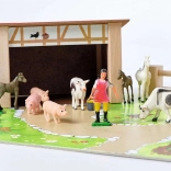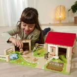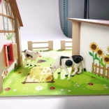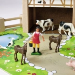 - Kuća sa štalom i stajom, šarena podloga, ograde, naljepnice, 12 figurica (životinje i figurica farmera)