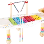 Otkrijte zabavan način kako djecu upoznati sa svijetom glazbe. Ovaj stabilan drveni glazbeni stolić s točkicama nudi ksilofon, činelu, trokut i bubanj, razvija finu motoriku, ritam i kreativnost te oduševljava svojom šarenom i izdržljivom konstrukcijom.