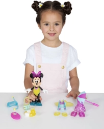 Otkrijte svijet mode s plažnim setom „Beach Beautiful“, gdje vaše dijete može odijevati omiljenu junakinju MINNIE MOUSE u razne stilove. Lutkica je visoka približno 12 cm i dolazi s ormarom/organizatorom za pregledno spremanje svih dodataka. Prozirno poklon-pakiranje sa zatvaranjem na klik lijepo izgleda na polici.
