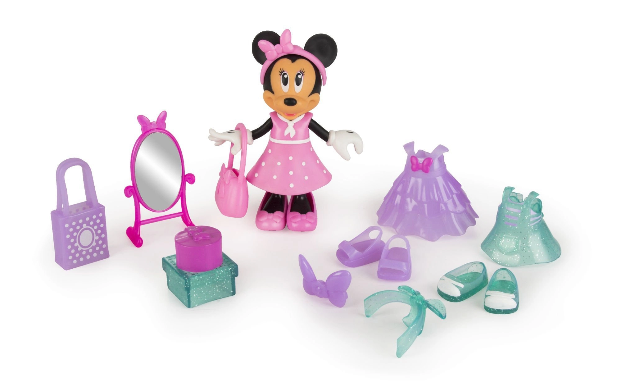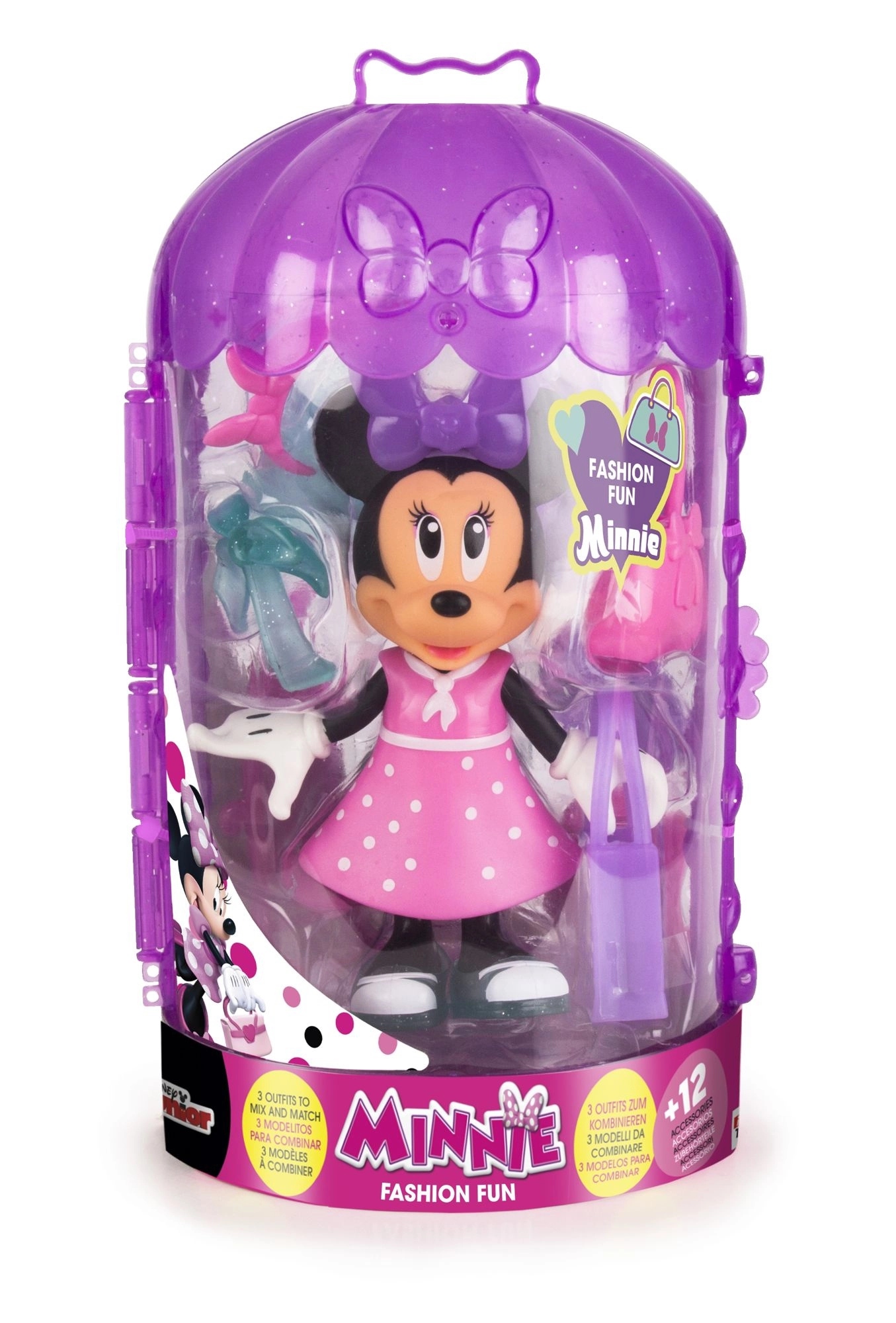 Slatka lutka MINNIE MOUSE iz licencirane serije DISNEY JUNIOR donosi sate kreativne zabave. U pakiranju se nalazi 3 različite haljine, 3 para cipela i dodatna oprema za beskrajno kombiniranje stilova. Zahvaljujući lakom kopčanju lutka se brzo presvlači, a set je idealan kao poklon za djecu od 3 godine naviše.