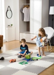 Jednostavno održavanje i modularno rješenje. Podloga je vodootporna i za uobičajeno čišćenje dovoljno ju je prebrisati vlažnom krpom. Dijelove slagalice možete povezivati u veće sklopove ili slagati u 3D oblike, što razvija dječju maštu. Nakon igre lako ju je rastaviti i pohraniti – ne zauzima puno mjesta.