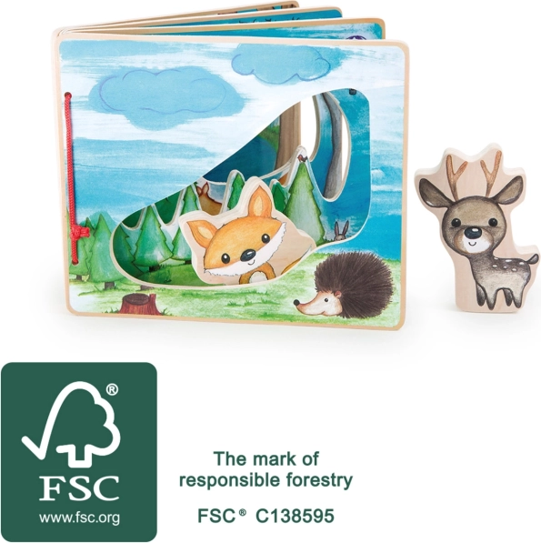 Uđite u duboku šumu s interaktivnom drvenom knjigom koja potječe maštu djece. Zahvaljujući figurama lisice i jelena, koje pomažu u otkrivanju flore i faune, svaka će igra postati jedinstveno iskustvo.