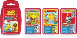 Popularna serija Top Trumps donosi izdanje iz svijeta SUPER ZINGS iz Kaboom Cityja. Svaka karta predstavlja lik s pet numeričkih atributa (npr. magija, hrabrost, mudrost). Odaberite najbolju osobinu, usporedite s ostalima i osvojite njihove karte. Najviša vrijednost pobjeđuje – igrate dok jedan igrač ne prikupi cijeli špil.