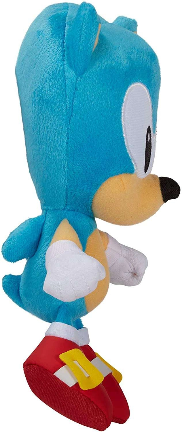 U svoju kolekciju uvrstite legendarnog junaka SONICA – brzog plavog ježa poznatog iz videoigara, filmova i serija. Ova kvalitetno izrađena plišana igračka vjerno prikazuje njegov ikoničan izgled: svijetloplavo tijelo sa žutim detaljima, bijele rukavice, crvene cipele s kopčom i tipične oči.
