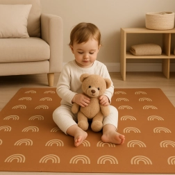 Stvorite djeci ugodan i siguran kutak za igru, puzanje i prve korake. Podloga od elastične EVA pjene je higijenska, lako se čisti (dovoljno je obrisati vlažnom krpom) i zahvaljujući debljini od 1 cm odlično izolira od hladnog poda. Decentan smeđi dizajn s kremastim lukovima pristaje svakom interijeru.