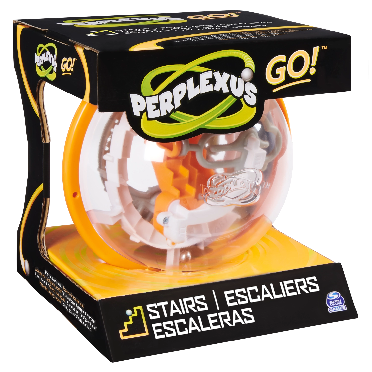 Džepna 3D slagalica Perplexus GO! Stepenice brenda Spin Master vježba strpljenje, spretnost i zapažanje. Naginjite i okrećite prozirnu kuglu te vodite metalnu kuglicu po promišljenim stazama, preko stepenica, rampi i zavoja sve do cilja. Zahvaljujući kompaktnim dimenzijama idealna je za putovanja i zabavu bilo kada i bilo gdje.