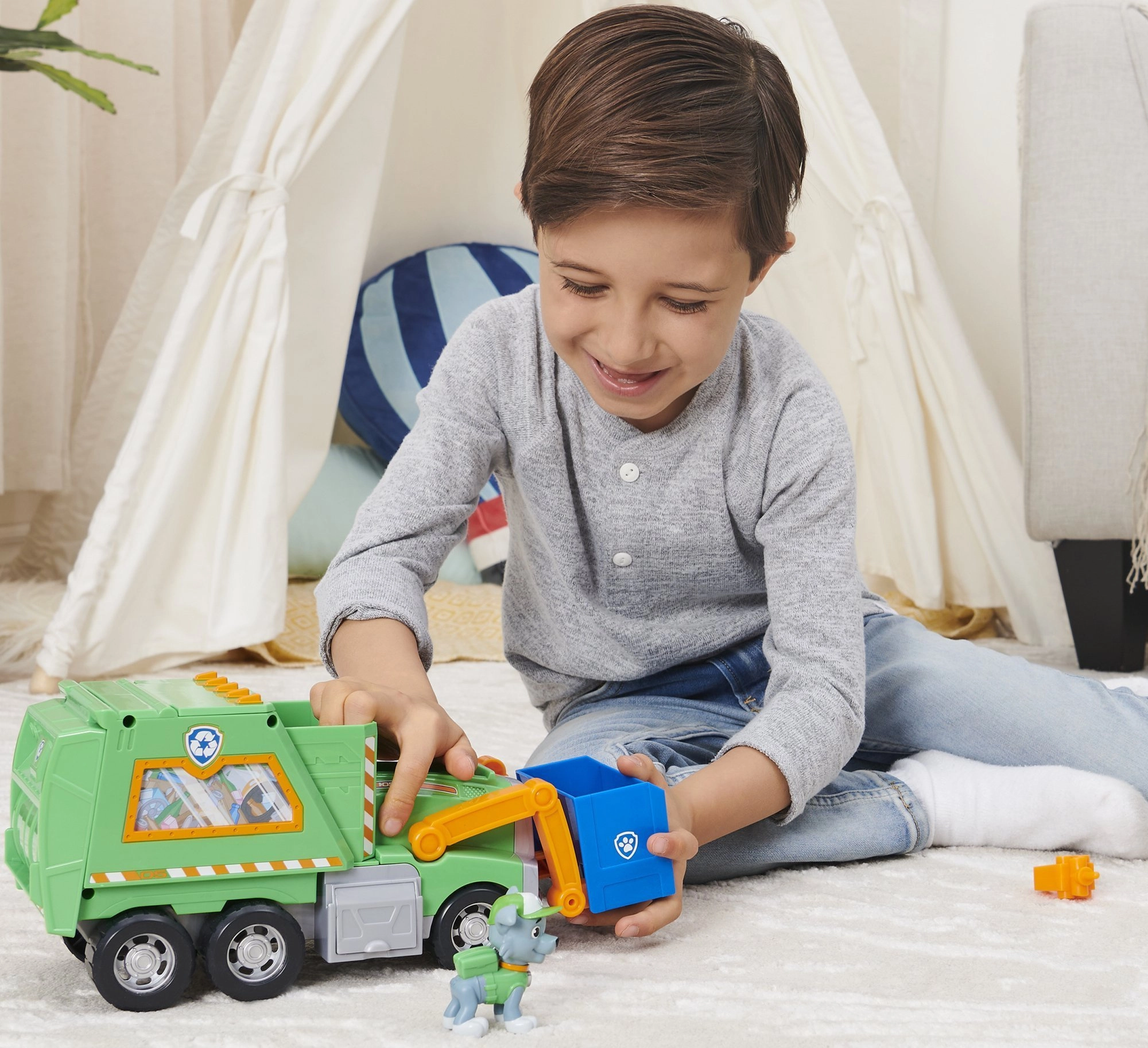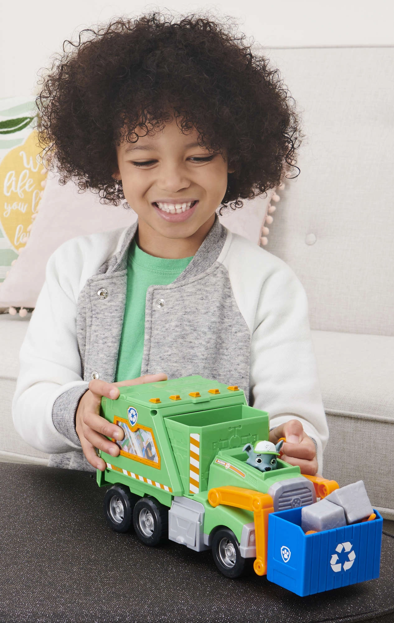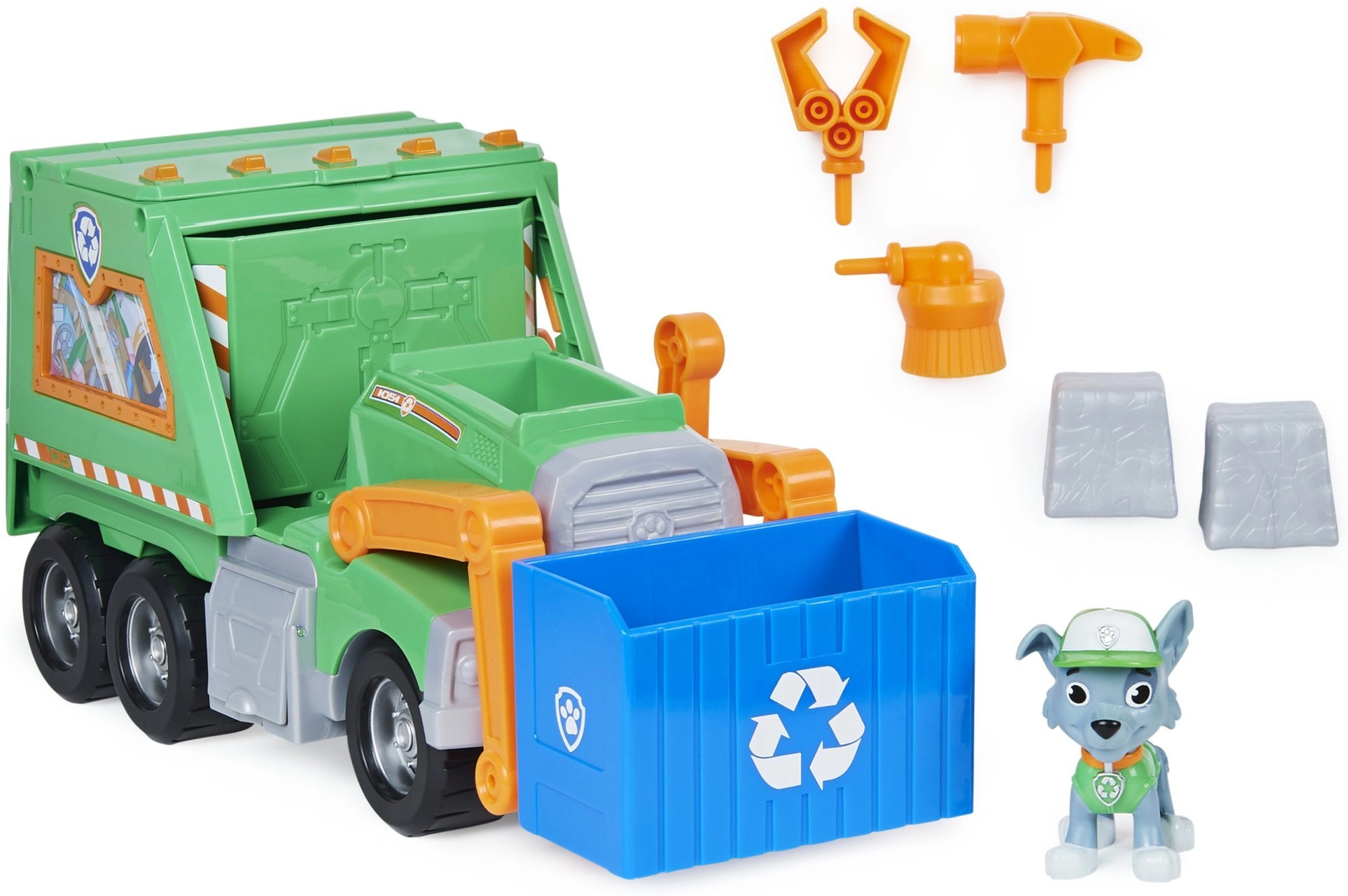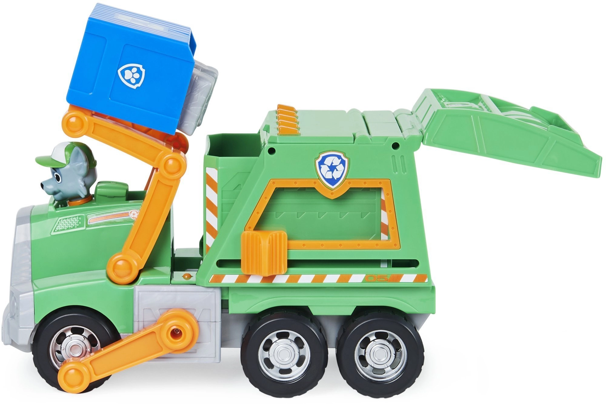 Veliko reciklažno vozilo iz omiljene serije Paw Patrol donosi djeci sate kreativne igre. Zeleni Rockyjev kamion ima pokretne vilice, izmjenjive alate, radnu košaru za razvrstavanje i mjesto za figuricu Rockyja. Zahvaljujući izdržljivoj izradi i pokretnim kotačima idealan je za igru kod kuće i na tepihu.