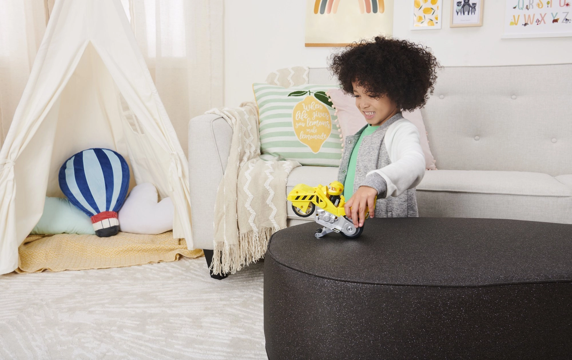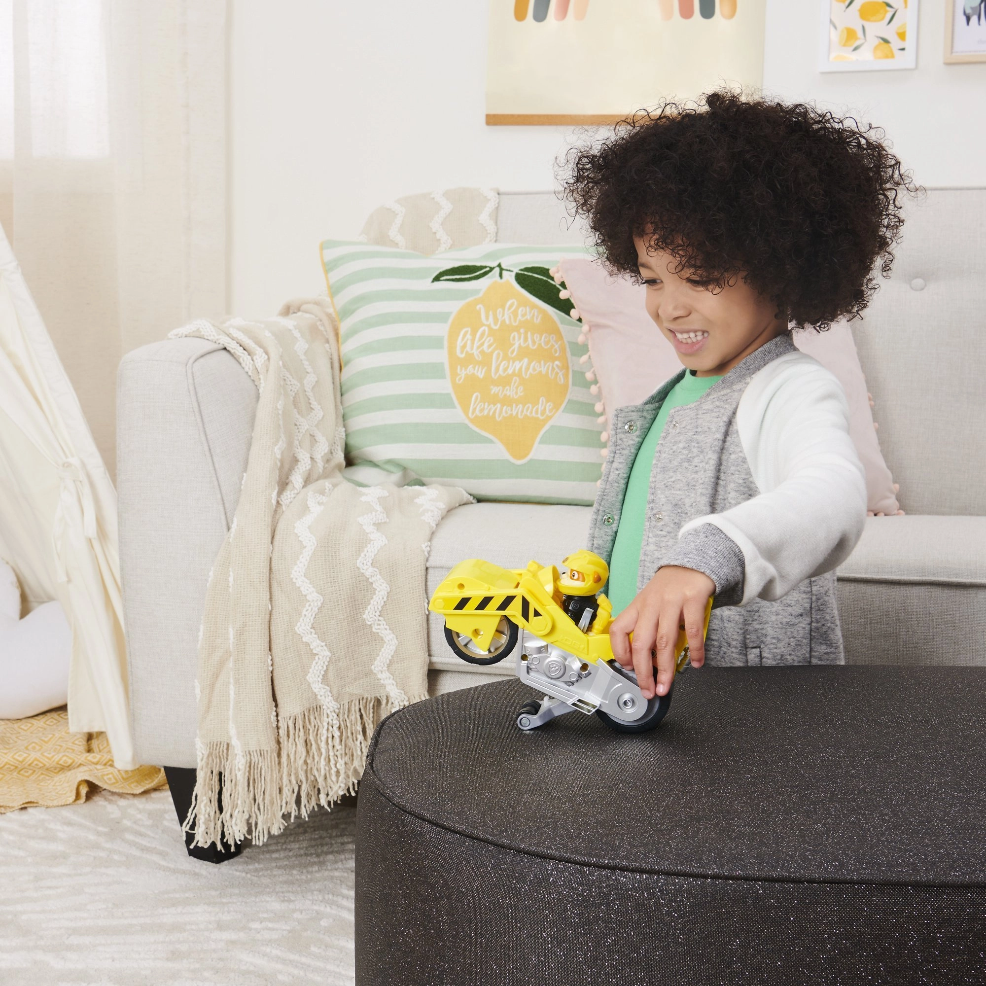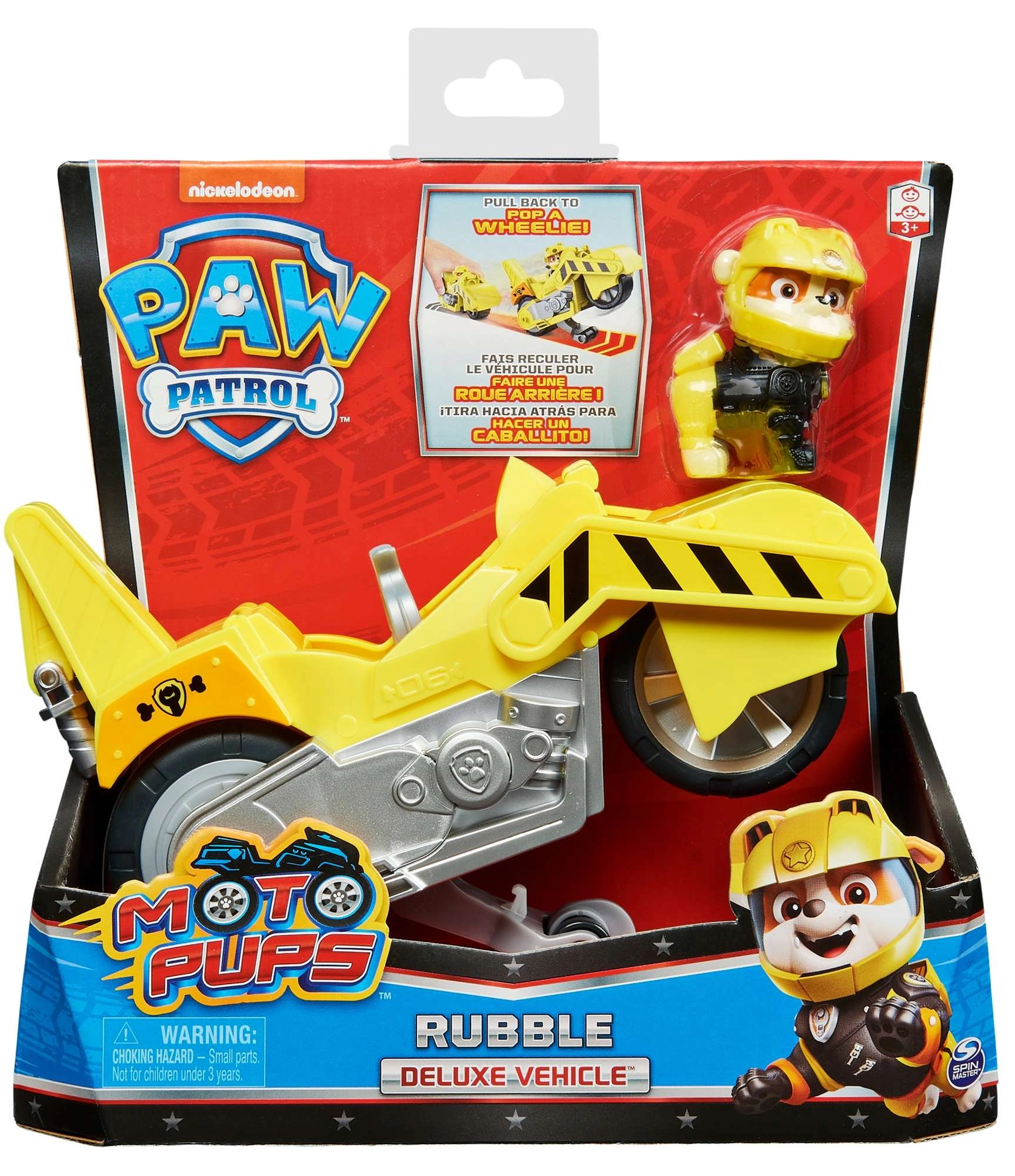 Krenite na gradilište i u spasilačku misiju s buldogom Rubbleom i njegovim žutim kaskaderskim motociklom iz serije Moto Pups. Robusna izrada, izraženi žuti detalji i veliki kotači osiguravaju odličnu stabilnost, dok inercijski mehanizam donosi djeci mnogo brze zabave.
