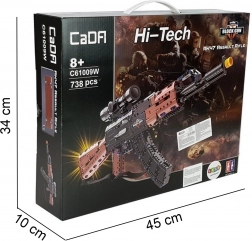 Sastavite detaljan model legendarne puške AK-47 iz CaDA kompleta s 738 dijelova. Čvrsti blokovi, pokretni elementi, odvojivi spremnik i dodaci za kreativno slaganje i izlaganje. Kompatibilno s drugim građevnim setovima, idealno za djecu 8+ i entuzijaste modelarstva.