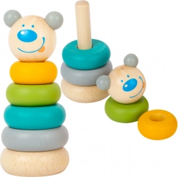 Preslatka drvena slagalica–toranj s medvjedićem brenda SMALL FOOT razvija finu motoriku, koordinaciju oko–ruka te učenje boja, oblika i veličina. Glatki, zaobljeni dijelovi sigurni su za najmlađe i savršeno pristaju dječjim ručicama.