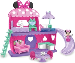 Dio seta su 2 figurice (visoke oko 7,5 cm) i bogat pribor, uključujući namještaj. Djeca mogu slati likove niz tobogan, penjati se uz stepenice i iznova slagati interijer. Idealan poklon za djecu od 3 godine i kao proširenje zbirke igračaka s motivom Minnie.