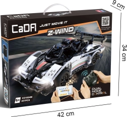 Konstruktorski set CaDA Z-Wind spaja radost sastavljanja s dinamikom daljinski upravljanog modela. Precizno izrađena karoserija u bijeloj boji s crnim detaljima, funkcionalna LED svjetla i glatka vožnja do 5,5 km/h čine ovaj trkaći automobil dojmljivim komadom za igru i izlaganje.