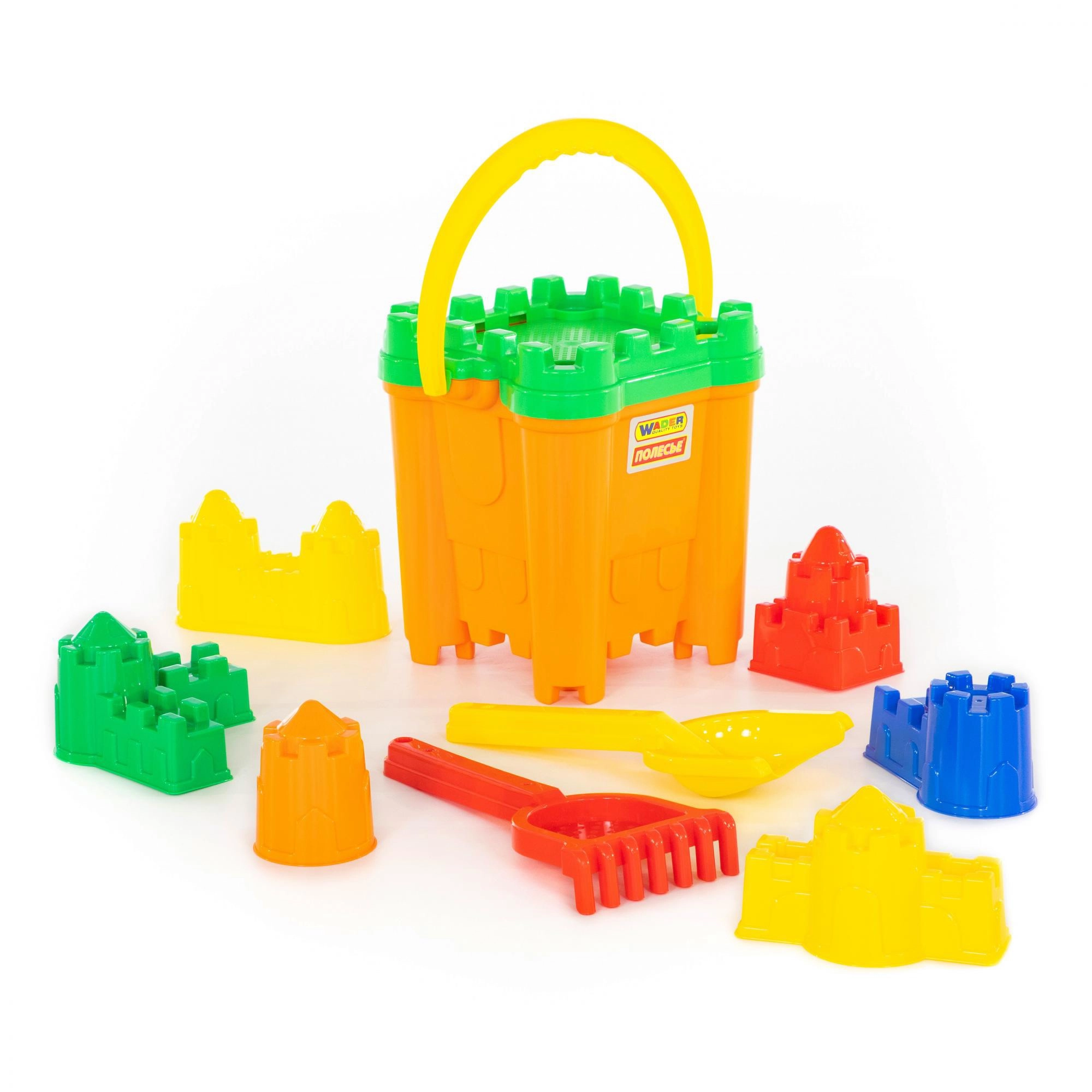 Sagradite na plaži ili u pješčaniku najljepši dvorac! Ovaj praktični set sadrži sve što djeci treba za kreativnu igru: prostranu kantu sa sitačem u obliku kule, 6 različitih kalupa s kulama, lopaticu i grabulje. Kvalitetna izrada od izdržljivih plastika jamči dugi vijek trajanja i sigurnu igru.