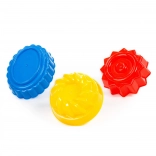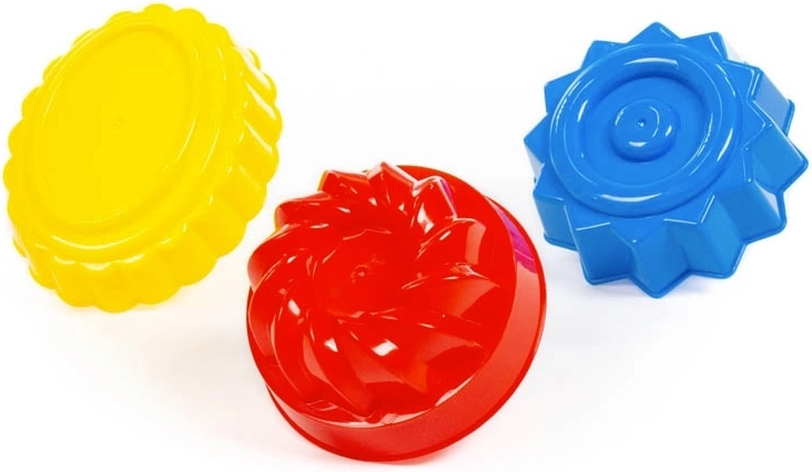 Tri različita oblika bábovki omogućuju djeci stvaranje raznolikih i dekorativnih oblika od pijeska ili plastelina.