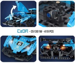 Model je dizajniran s naglaskom na detalje i funkcionalnost: ne nedostaju otvarajuća stražnja hauba, okretni upravljač i podesivo sjedalo. Sastavljeno vozilo mjeri približno 39 × 13,6 × 8,2 cm i postiže brzinu do 5,5 km/h. Dijelovi su kompatibilni s drugim CaDA setovima, pa lako proširujete svoju kolekciju.