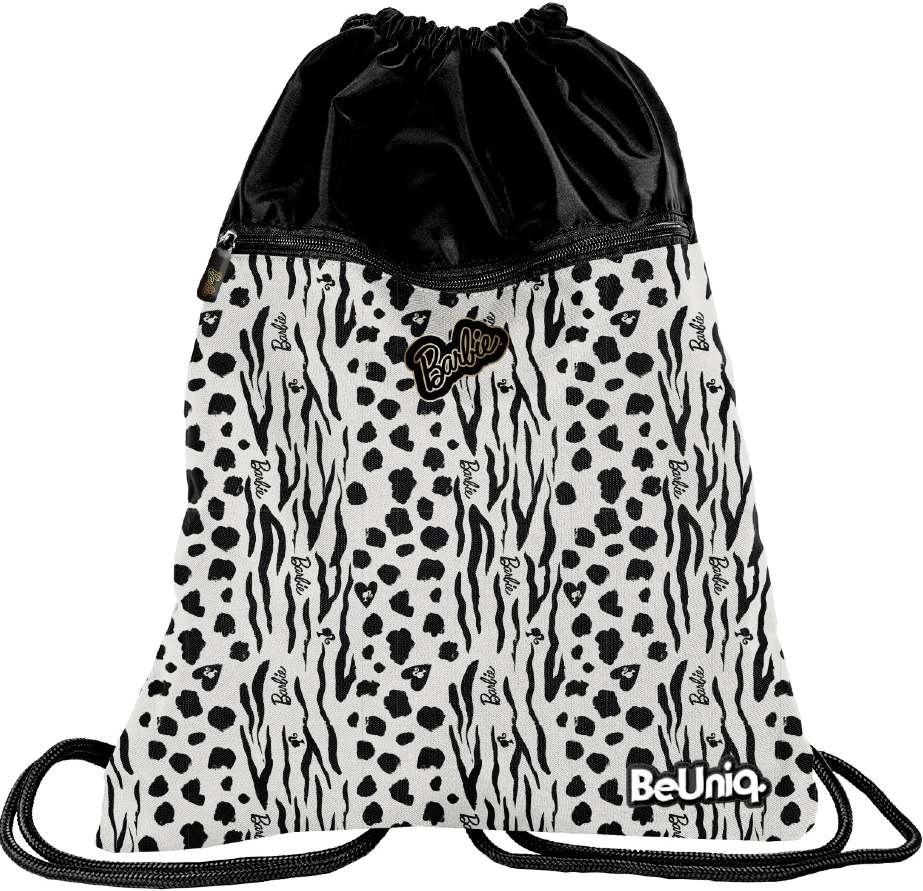 Stilizirana gym vreća za djecu i tinejdžere brenda PASO s motivom BARBIE u crno-bijeloj izvedbi. Nudi laganu konstrukciju, prostranu glavnu komoru na vezicu, prednji džep s patentnim zatvaračem i pojačana leđa s mrežicom za veći komfor. Izdržljiv vodoodbojni materijal i jake vezice omogućuju udobno nošenje na leđima ili preko ramena.
