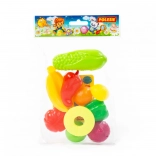 Ovaj šareni set namirnica sjajan je dodatak dječjoj kuhinjici. Djeca se mogu igrati kupovine, kuhanja i posluživanja, a istovremeno kroz igru uče prepoznavati različite vrste voća i povrća.