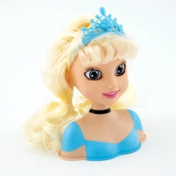 Zabavna glava za češljanje s plavom kosom idealna je za male frizerke. U pakiranju se nalazi torzo lutke veličine 12 × 16 cm, razni ukrasi i četka za češljanje za stvaranje beskrajnih frizura.