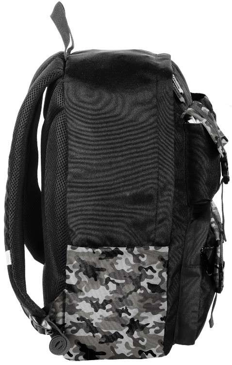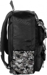 Lagana školska torba BeUniq Moro brenda Paso u crnoj boji s maskirnim uzorkom nudi prostrani glavni pretinac, udobne ergonomične naramenice i čvrsta, prozračna leđa s ojačanjem. Zahvaljujući reflektirajućim elementima sigurna je na putu do škole, bočni džepovi za bocu i prednji džepovi na patentni zatvarač brinu se za savršenu organizaciju. Izrađena od izdržljivog, vodonepropusnog poliestera i prikladna za format A4.
