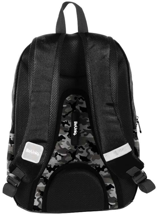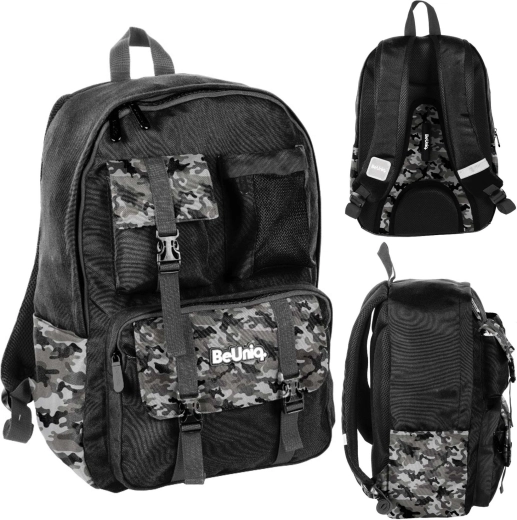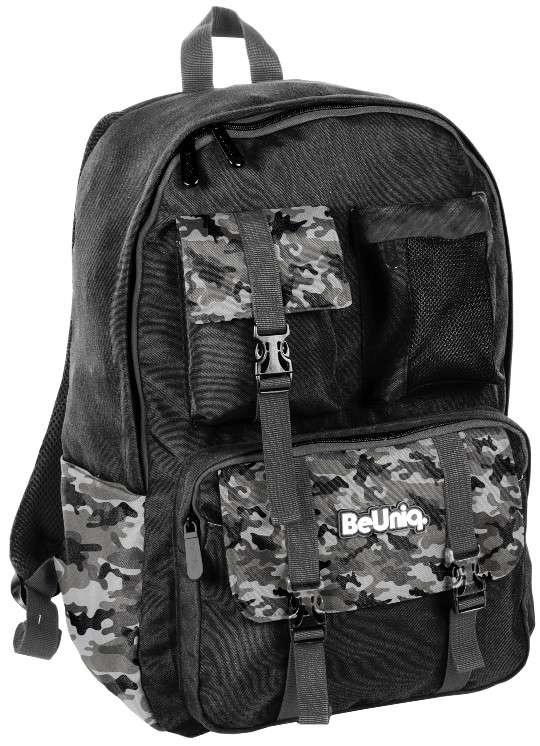 Tražite pouzdanu školsku torbu za svaki dan? BeUniq Moro spaja moderan maskirni dizajn i funkcionalnost: jedan veliki pretinac za udžbenike i bilježnice formata A4, tri prednja džepa na patent za sitnice i dva bočna tekstilna džepa za bocu. Ojačana, anatomski oblikovana leđa s prozračnom mrežicom i udobne ramene naramenice s podešavanjem osiguravaju komfor i pri punom opterećenju.