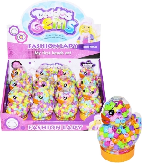 Zabavan set za male i velike stvaratelje: šarene perlice i niti za nizanje s motivom patkice. Potiče finu motoriku, kreativnost i strpljenje. Šarene perlice, niti u pakiranju i jednostavno stvaranje za početnike i djecu (preporučen nadzor odraslih).