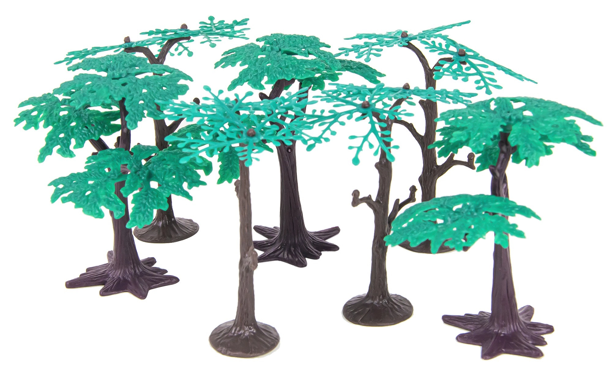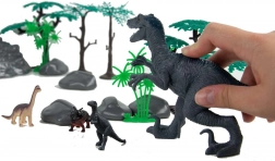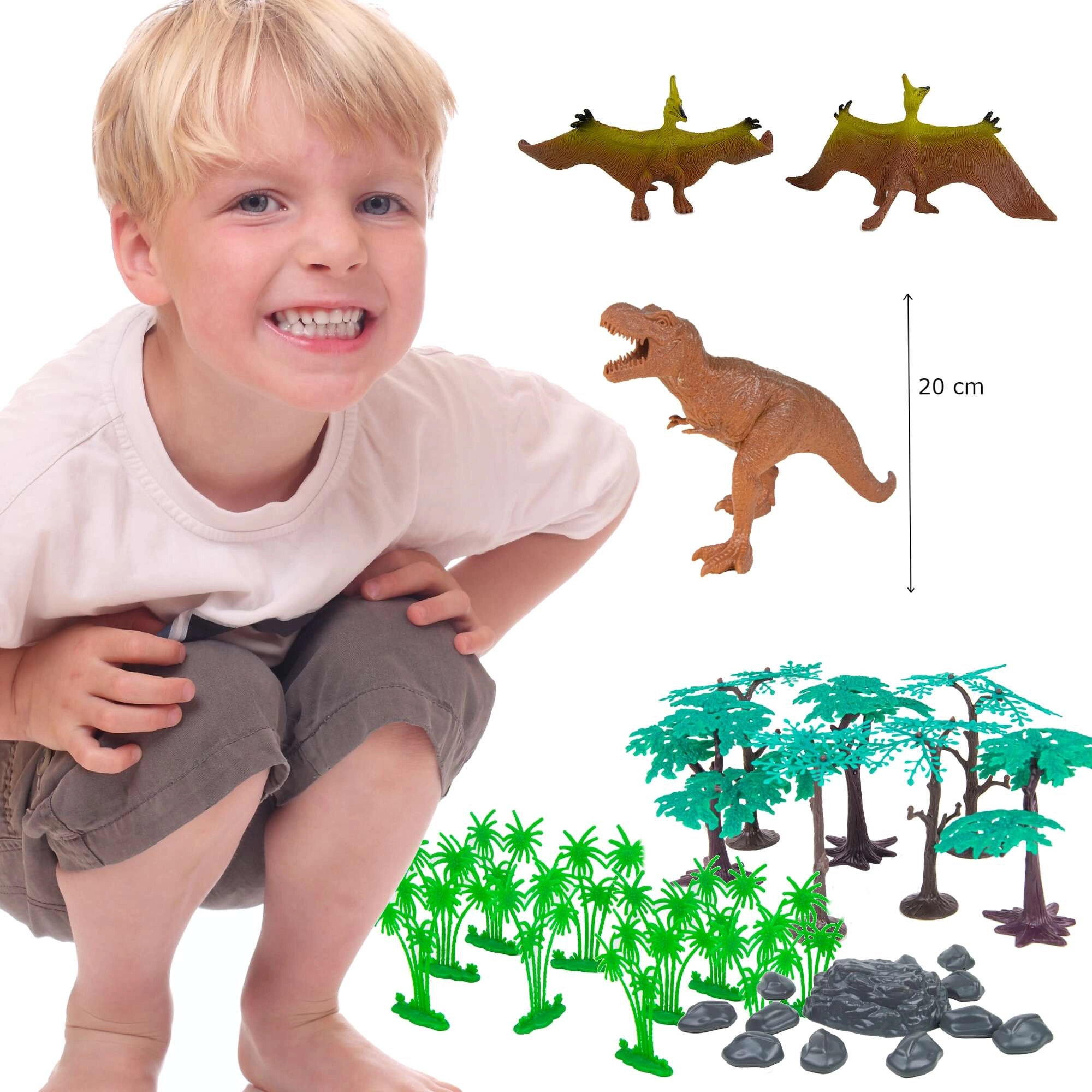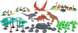 4 velika dinosaura, 7 srednjih, 16 malih, stabla, palme i stijene